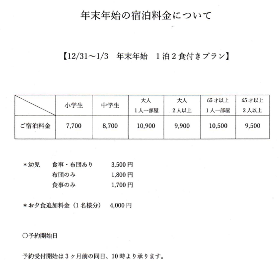 【年末年始 1泊2食付プラン】のみの販売とさせていただきます。